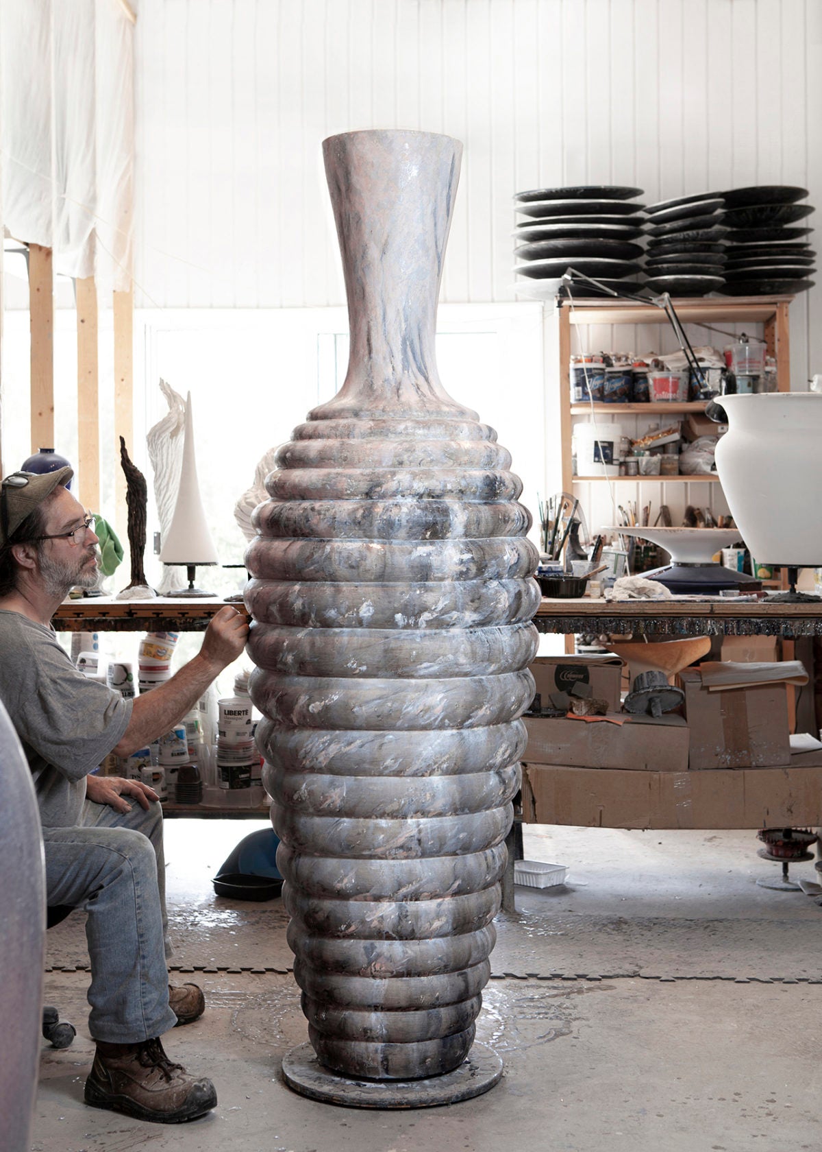 From the fusion of innumerable techniques developed over forty-five years, pieces of which the unfathomable surfaces owe nothing to the conventional glaze are born.
